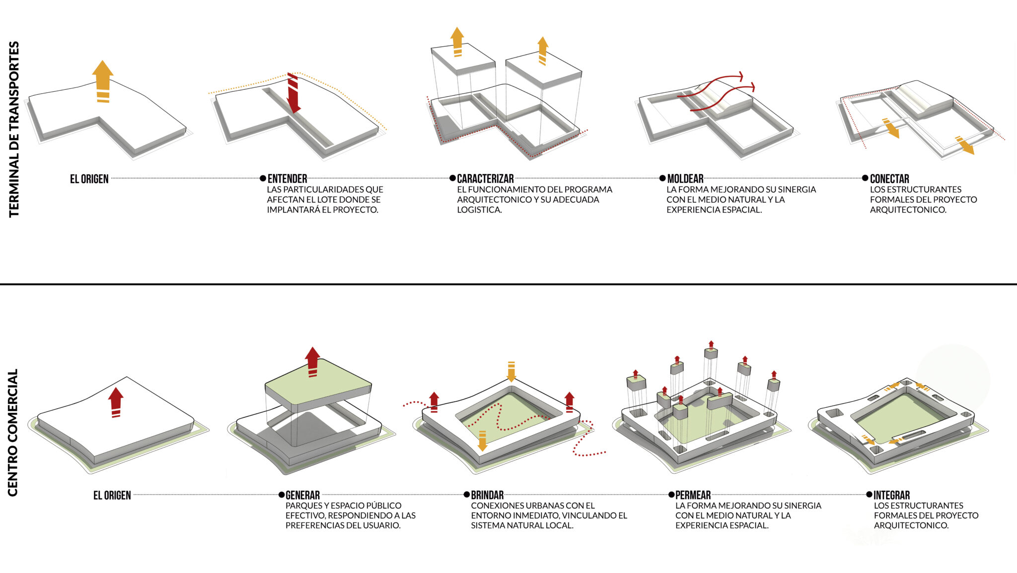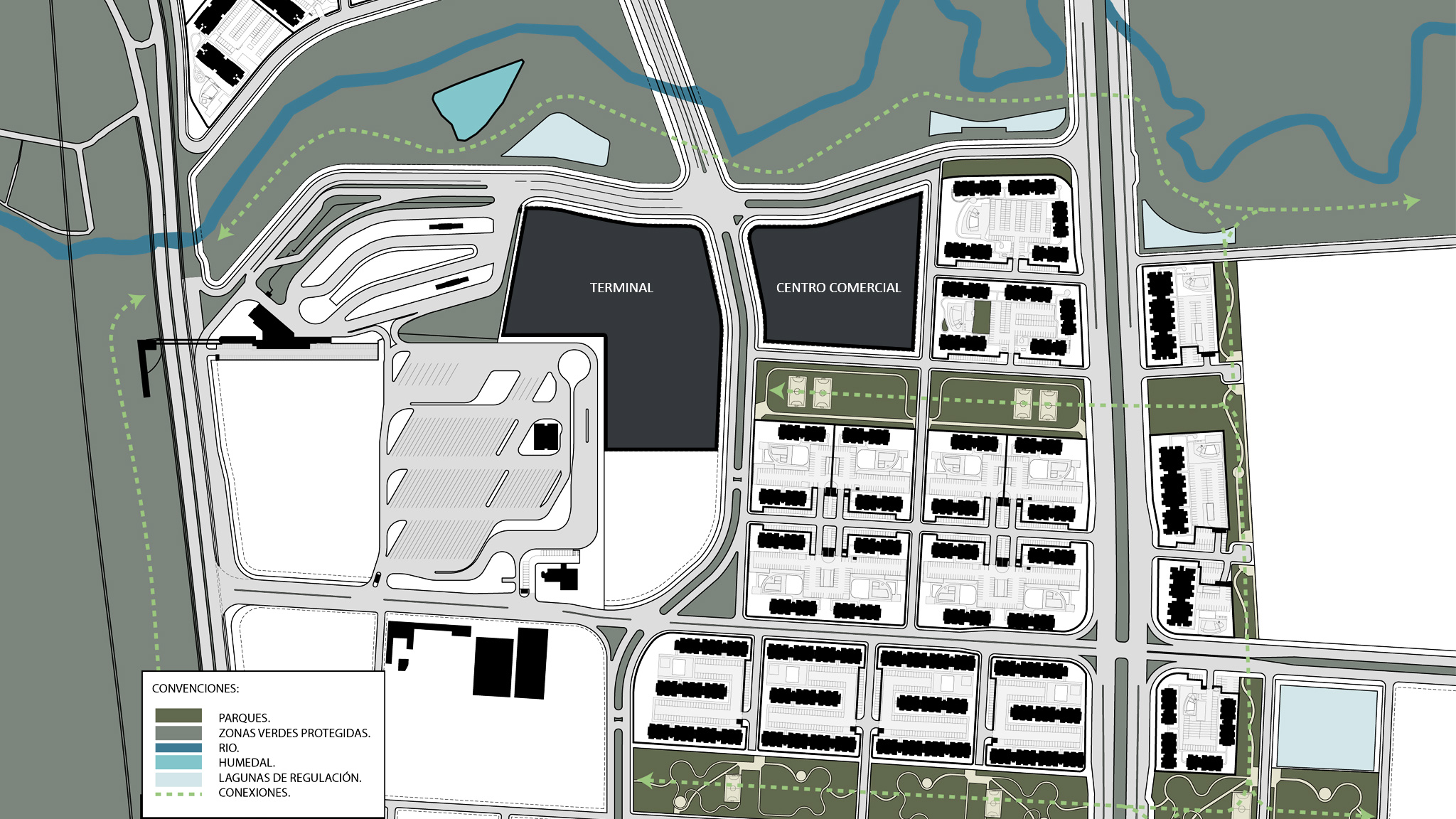 The "CORTIJO MASTER PLAN," on the other hand, addresses how to resolve the urbanization process for lots intended for institutional use with transportation equipment, commercial, and service uses. The goal is to design architecture that, on the one hand, meets commercial expectations and regulatory restrictions and, on the other hand, responds to the sector's conditions by generating a positive impact on the city, changing the paradigm regarding uses and configuring spatiality with landscape, environmental, climatic, and aesthetic qualities.