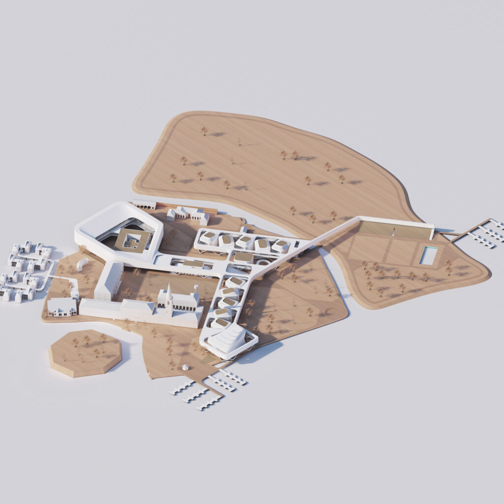 The L-shaped layout of the house not only adapts to the terrain, but also helps to maximize natural light and cross ventilation. The inner corner, which serves as the main entrance, is strategically located to maintain privacy and connection with the internal garden.